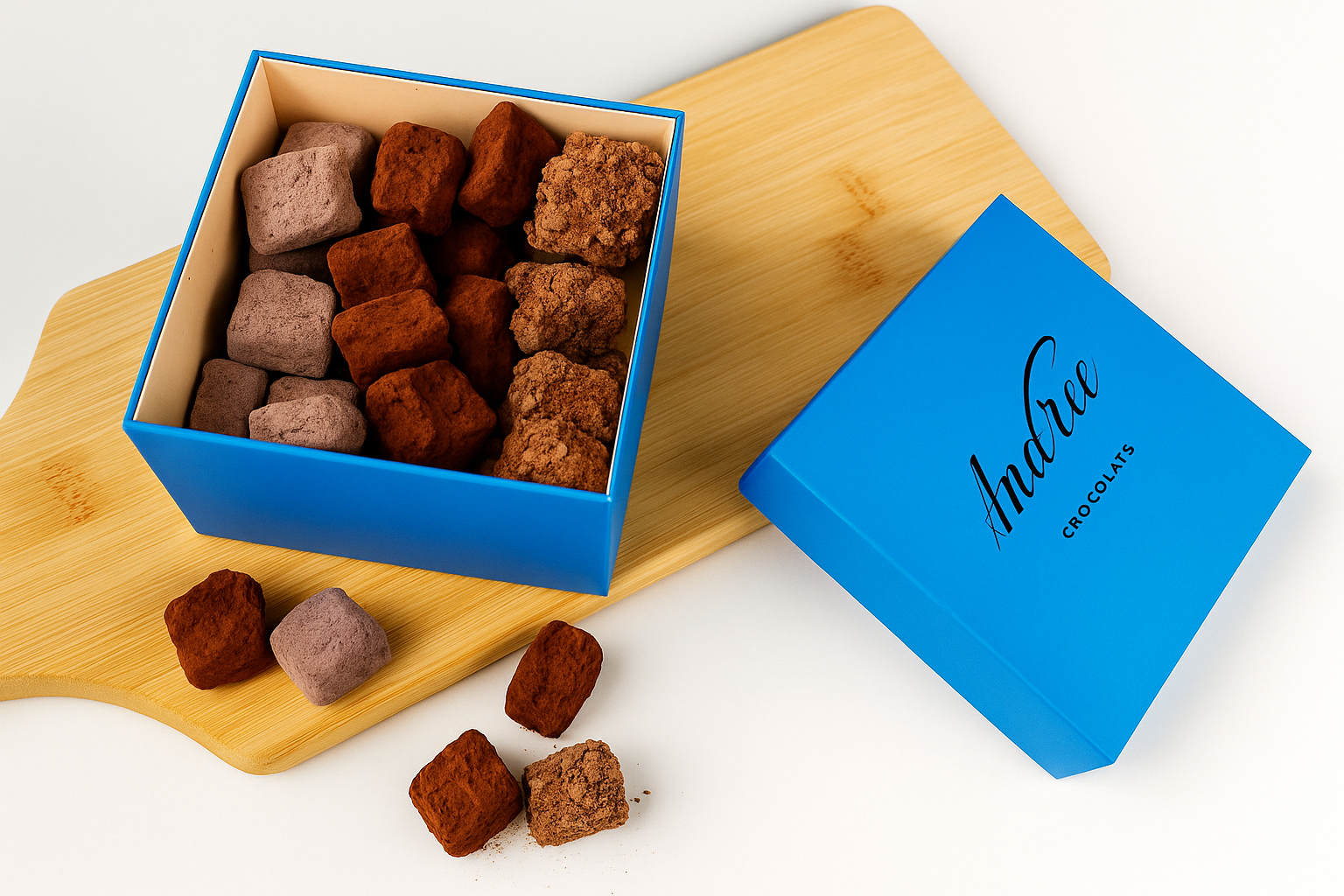 - Truffes intense chocolat : pour les amateurs de chocolat noir riche et puissant, avec une texture lisse et un goût corsé.