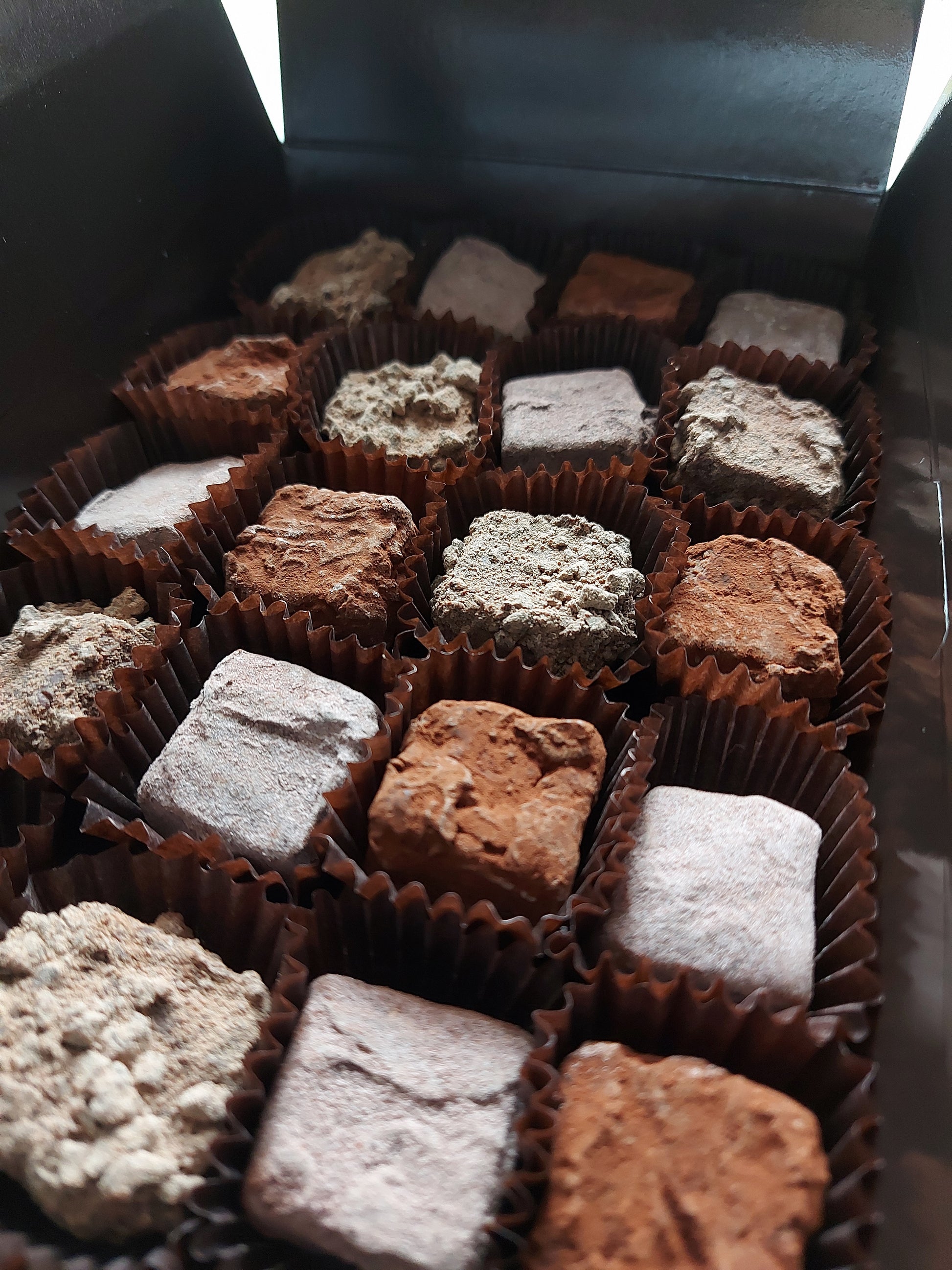 - Truffes intense chocolat : une ganache riche en chocolat noir, parfaite pour les amateurs de chocolat puissant.