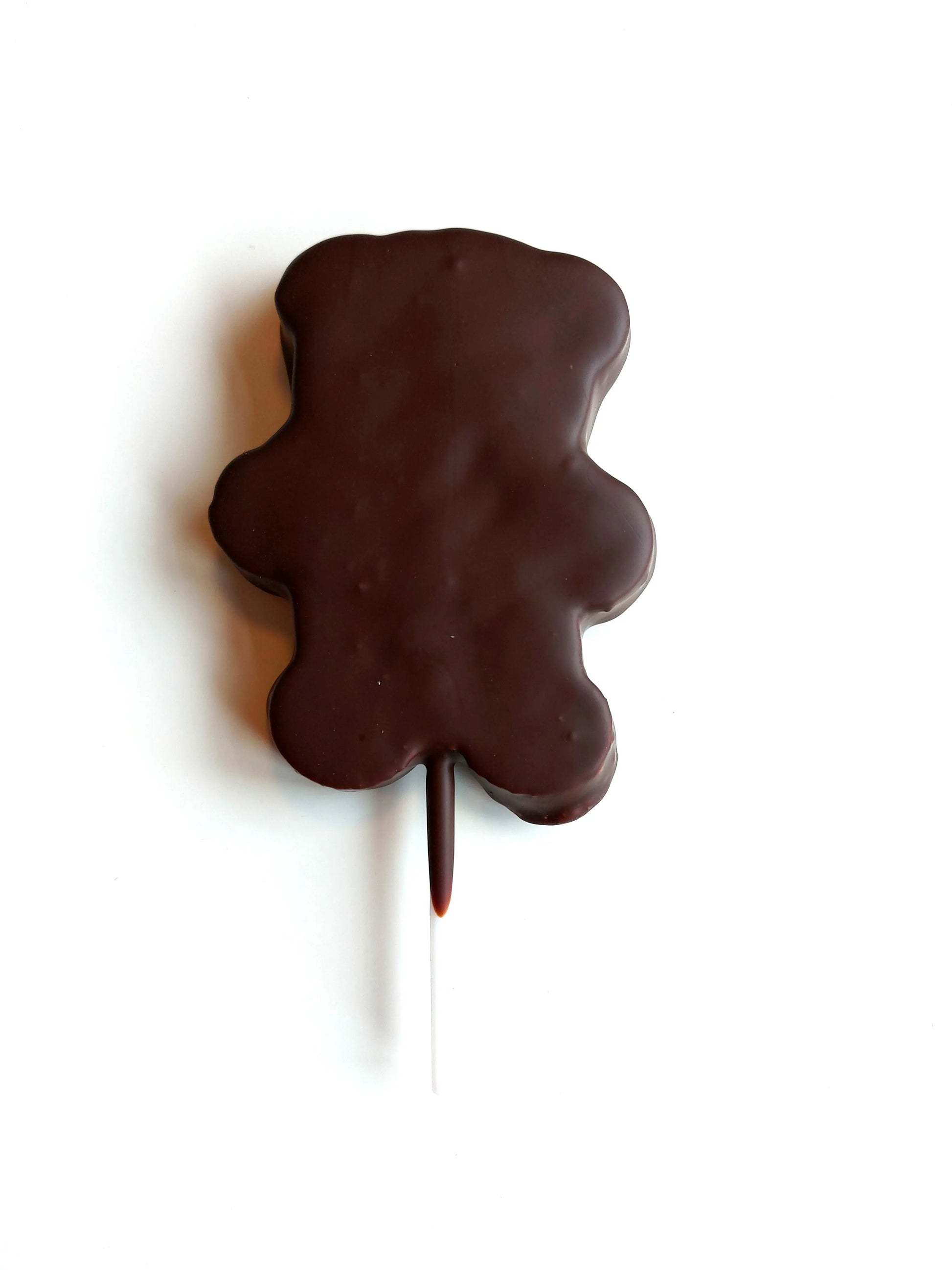 Ourson fait de guimauve vanille maison avec un enrobage chocolat noir 64% ou chocolat au lait 38%.
